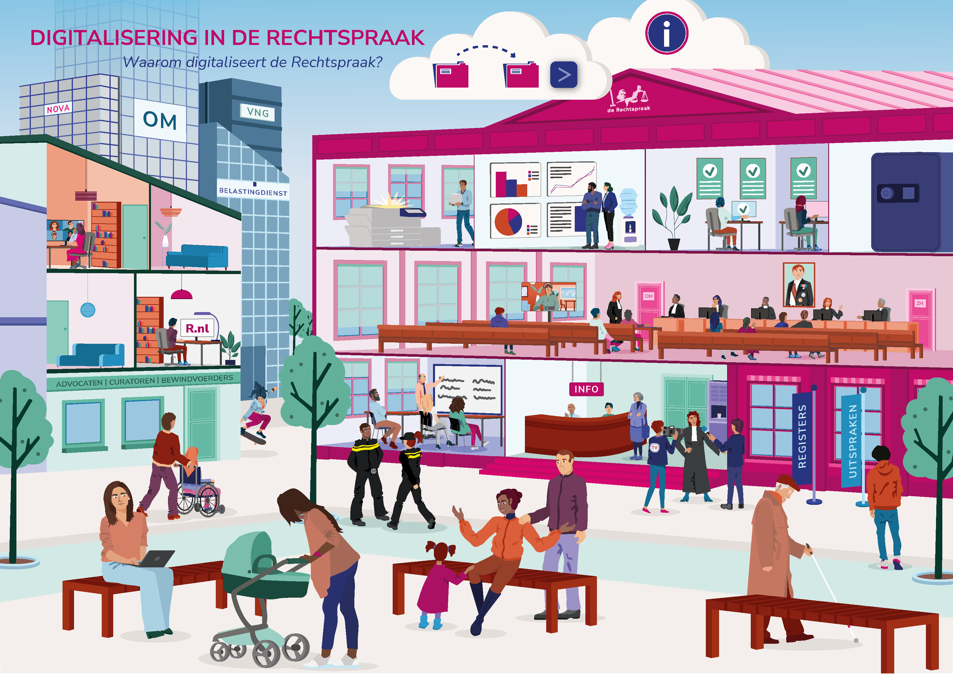 Voor toegang tot de rechter is digitalisering essentieel. Het kan die toegang zelfs eenvoudiger en laagdrempeliger maken. We staan daarom aan de vooravond van een digitale transformatie waarin we niet meer via een scherm papier verwerken, maar écht digitaal gaan werken, zodat: