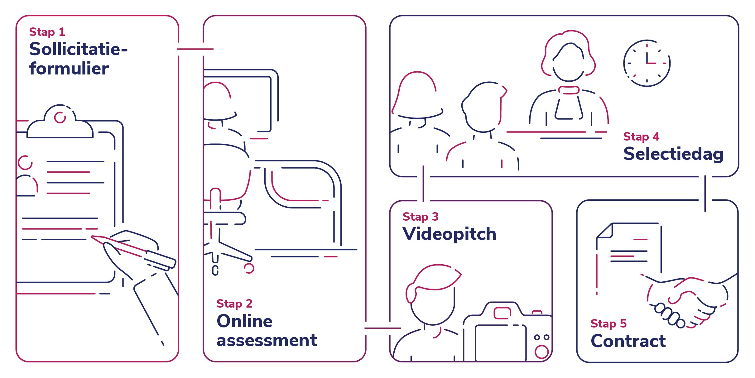 Je sollicitatie begint eenvoudig, je hoeft geen cv of motivatiebrief toe te voegen. We leren je in de rest van het selectieproces namelijk graag persoonlijk beter kennen. Solliciteren kan tot en met 11 augustus.